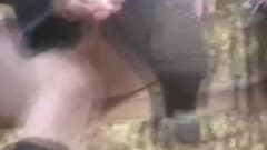 Esta mulher madura está relaxando num parque mas não sabe que está sendo filmada...estranhos filmam sua buceta quando se apercebem que ela não trás calcinha...