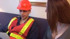 Esta Milf morena e sexy é uma chefe que quando está com tesão escolhe um funcionário para foder, e hoje é a vez desse cara, um empreiteiro que fode bem e que deixa seu rosto bem pegajoso.