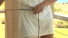 A gostosa se masturba em uma varanda com uma vista excelente, mas isso não é a melhor, a melhor parte é vê-la enfiar os dedos dentro de seu bichano molhado.