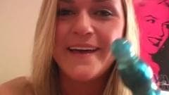 Essa porno star loira filma se masturbando com seu vibrador azul favorito, certificando-se de que não você não perde nada.