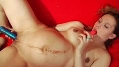 Ela usa dois dildos para se masturbar colocando-os dentro de sua buceta e de sua bunda dando-se uma dupla penetração própria até ao orgasmo!