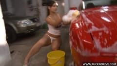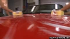 Estas duas morenas lindas estão se divertindo juntas a lavar um carro...É uma lavagem de carro sensual que você não deve perder.
