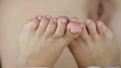 Esse cara tem um fetiche por pés e quer que Lina o masturbe com os pés, o que ela faz antes de se sentar em seu pau duro...