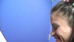 Esta morena atrevida fica sempre excitada quando vê um grande pau negro cutucando através da parede e ela faz a primeira coisa em que pensa que é pegar nele e sugá-lo até que ele gozae sobre ela.