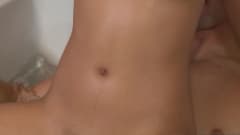 Este pintainho asiático quente e húmido chegou de Nuru Massage para fazer seu trabalho e pagar massagens de pênis com sua buceta enquanto ela geme como uma prostituta.