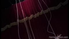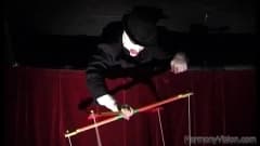 Esta morena é a estrela do jogo quando ela é um fantoche ao vivo e ela vai foder seu titereiro. A cena de sexo muito atrevido no palco.