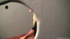 Esta puta loira tesão vai para o banheiro, quando ela percebe que há um buraco na parede para que ela espera por um pau para picar através dele e quando isso acontece, ela leva sua chance e chupa que é difícil até que ele cums em sua boca.