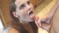 Esta morena tinha acabado de sair da banheira quando sente um desejo incontrolável de chupar o pau de seu namorado, que hoje quer enchê-la de esperma.