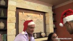 Esta sexy morena está se sentindo festiva com esta grande dupla penetração, sexo anal e ejaculação facial com esses dois caras ansiosos.