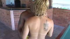 Esta cadela loira toma pau na bunda na mesa de snooker por um negro com um grande pau... ele empurra duro +ra dentro da bunda dela até gozar em seu rosto.