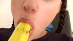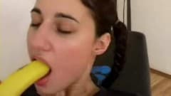 Esta porca de árabe utiliza uma banana para masturbar-se. Ela está com grande vontadinha.