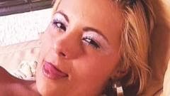 Esta loira húngara toca-se enquanto seu namorado registra a ação em câmera e, em seguida, ela suga o seu pau para ele filmar também...