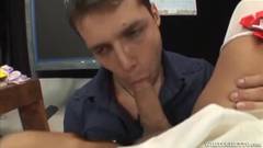 Esta enfermeira safada tem uma surpresa, e a surpresa é que ela está escondendo um pau sob aquela pequena saia que vai passar a tarde penetrando cu alheio...