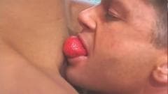 Esta Milf loira e sexy tem um monte de diversão com seu parceiro na cozinha hoje, ela brinca com frutas e desfruta de uma grande foda que termina em uma ejaculação facial.