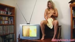 Esta loira brincalhona está com vontade de um pouco de diversão pelo que começa a dedilhar sua buceta e a mostrar na tela de sua TV para que possamos assistir com mais detalhe...