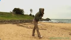 Esta morena se excita em uma sessão de fotos de nudez onde ela está na praia na frente das pessoas, vestida só com sua pele sedosa e suas belas curvas...nada mais!