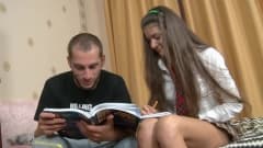 Esta jovem estudante sexy teve o suficiente de seu dever de casa e agora quer foder. Eles têm algum burro do caralho também que ainda é bastante coisa nova para ela, mas ela adora.