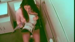 Uma gaja começa a masturbar-se numa casa de banho após ter visto uma revista porno. O que ela não sabe é que está a ser filmada por um amador às escondidas.
