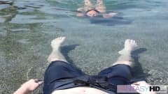 Esta morena sexy está se sentindo com tesão, então ela vai para um mergulho de piscina, nua. Em seguida, tem um monte de brincadeiras sexuais na piscina com seu macho...