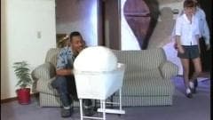 Estes dois homens não sabem o que fazer com o bebê, então eles chamam a babá que é também muito útil para dar-lhes um pouco de prazer!