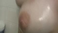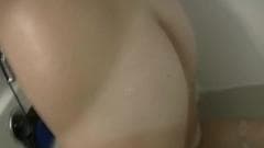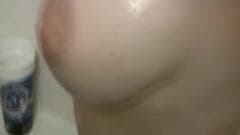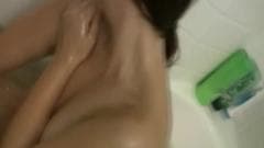 Esta morena sensual está nua em sua banheira, cobrindo-se com sabão e esfregando seus belos e fartos seios naturais, ficando com a buceta bem molhada e com muito tesão...