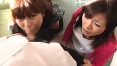 Duas namoradas asiáticas tesudas são forçadas a dar uma à outra um pouco da língua ao compartilharem o mesmo pau.