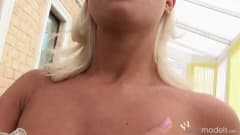 Esta adolescente loira adora se masturbar de maneiras diferentes, com diferentes objetos e hoje ela se fode com um pepino grosso e, em seguida, ela mija no chão para acabar em prazer.