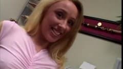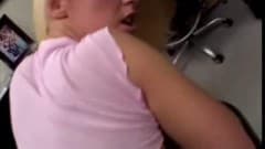 Essa é uma bela cadela loira que chupa a piça daquele cara no escritório.