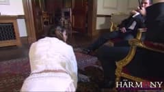 Esses dois machos de smoking estão esperando ansiosamente por esta jovem cadela para poder foder o cuzinho dela...