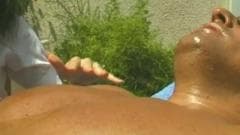 Esta menina impertinente visita a casa de seu vizinho que está nu tomando banhos de sol à beira da piscina. Quando ela o vê pensa que ele está morto, então ela vai e tenta trazê-lo de volta à vida com suas mãos e sua boca...