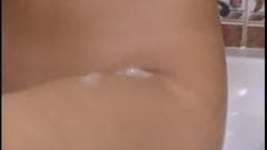 Uma loira sexy está seduzindo seu namorado na banheira para que possa transar com ele mesmo dentro dela...