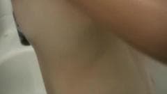 Enquanto essa morena peituda está na banheira, seu marido aparece para gravar com sua câmera e fazer o seu filme caseiro que mostra seu corpo nu.
