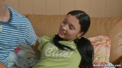 Nesta cena, vemos uma linda jovem morena ficando excitada com o namorado que molha sua buceta e fica de pênis duro para penetrá-la com força!