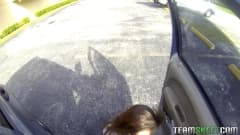 Esta cena começa com um bom boquete no carro e, em seguida, eles vão em casa para uma boa trepada na cama enquanto ele filma toda a ação.
