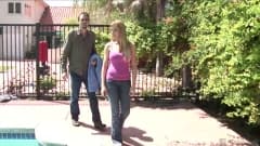 Estas duas lindas garotas pensaram que poderiam tomar um pouco de sol à beira da piscina, sem excitar os seus vizinhos, mas elas estavam errados e não têm escolha, senão foder com eles!