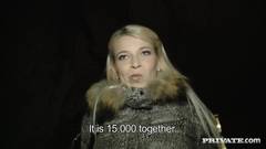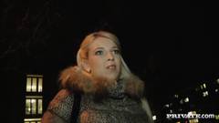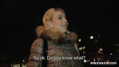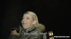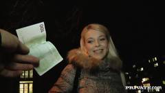Essa puta loira concorda em foder esse cara que acabou de conhecer na rua, porque ele vai pagar-lhe um monte de dinheiro para poder fodê-la!