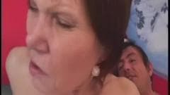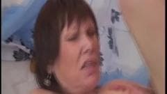 Esta coroa nos mostra que ainda tem tesão em seu foder com seu vibrador preto e, em seguida, sendo penetrada com força por esse cara...