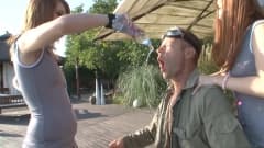 Denisa Cielo, Roxxxy Rush e Kristine Crystalis estão dispostas a satisfazer um cara que está se metendo na rua com suas palhaçadas...
