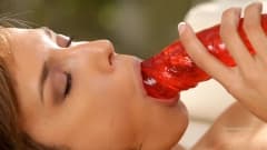 Esta morena jovem e atraente gosta de estar sozinha no divã, enquanto desfruta de um dildo de borracha, colocando-o em sua vagina com delicadeza...