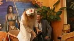 Aqui está uma enfermeira francesa que não consegue resistir a uma sodomia. Ela chupa o pau de seu paciente antes de tomar no cú.