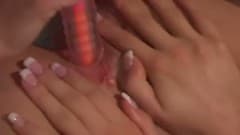 Loira não consegue resistir ao charme de Jenna Jameson então ela oferece cunnilingus e introduz vibrador em Jenna.
