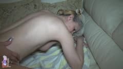 Estas duas coroas maduras estavam na cozinha, mas o seu desejo de foder foi mais forte e elas deixam tudo para foder com um strap-on.