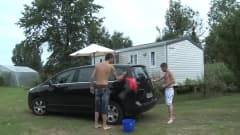 Estes dois gays decidem parar de lavar o carro para que possam começar a se sodomizar um ao outro ao ar livre!