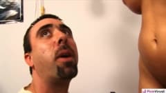 Ela está usando só a sua roupa interior, porque ela quer seduzir e excitar este homem para que a foda com muito tesão na frente da câmera!