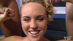 Esta loira gostosa é muito talentosa! Ela satisfaz dois homens ao mesmo tempo e ama cada minuto porque tem o controle completo sob o prazer deles.