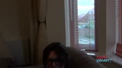 Jett Black está de joelhos para chupar esse pênis ereto, porque ela quer provar o esperma desse nerd e engolir tudo!