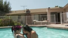 Joanna Angel e Brittany Lynn vão passar o dia juntas ao sol e, em seguida, aquecer o ambiente ainda mais se beijando e lambendo sua buceta na piscina.