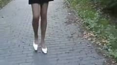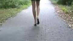 Desfile de loira tesuda nua em público e abre as pernas para mostrar seu bichano.