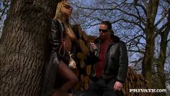 Esta loira sexy é amarrada e fodida por dois homens que fodem duro na bunda dela e também se deleitam com seus pés sensuais...