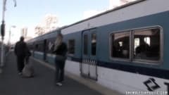 Lulu é uma gulosa que seduz um cara a chupar seu pau no banheiro do comboio. Ela também chupa o pau dele e toma seu sêmen em suas tetas lindas!
